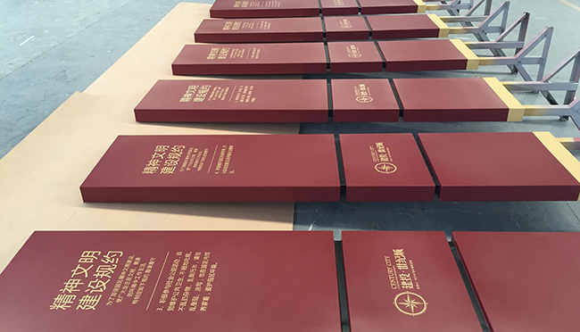 2016年4月26日,歡迎中海地產(chǎn)各位領(lǐng)導(dǎo)來我公司考察,我公司總經(jīng)理胡總代表公司全體員工對諸位客人的到來表示熱烈的歡迎。接著胡總就標(biāo)識標(biāo)牌里涉及到的材料、工藝及標(biāo)識文化給客戶做了詳細的介紹,為了讓客戶更加形象的了解...